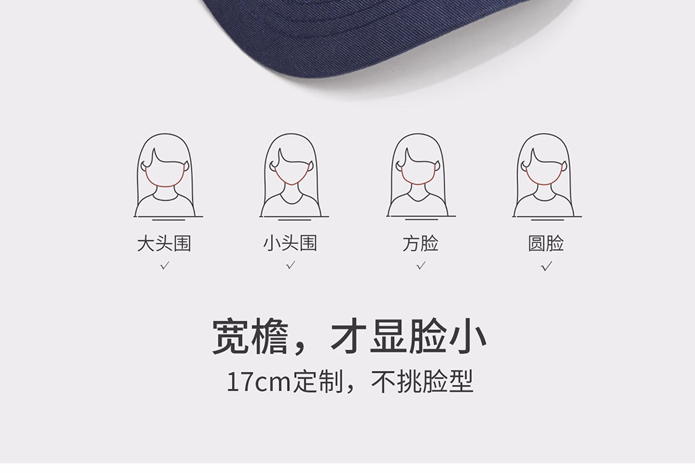 QBILY帽子男棒球帽秋季款户外运动鸭舌帽女遮阳帽加大加深宽帽檐显脸小 藏青色【54-60cm】 均码